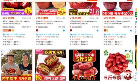 以红枣为例,大家放眼都是满眼的红色,让大家注意到的反而是黑色背景和纯白背景的,所以分析产品类目主图,通过颜色自己的产品在众多产品凸显点击及转换也会有着不错的数据。多看同行的主图!选择优质或找差异,这样你的产品主图才会在众多产品中脱颖而出!