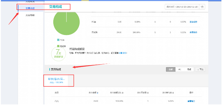 我们店铺的主营类目占比是要明确的,如果店铺同时存在多个类目产品经营,这会导致我们后期店铺流量冲突以及人群的不准确,所以我们可以在生意参谋,交易构成,查看我们店铺的主营类目占比是什么,并且核对我们店内的商品是否有放错类目,不要引起系统检测从而导致违规处罚。类目的属性如何,这个我们可以利用市场洞察来查看整个类目行业大盘的趋势,分析我们的店铺接下来的操作方向,比较各项属性值选择较好的属性值。